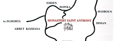 b) The Monastery is a hundred kilometers north of Beirut at an altitude of 950 meters. It can be accessible via the following roads: